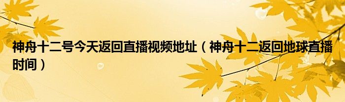 神舟十二號17號今天返回地球直播視頻地址、直播時間