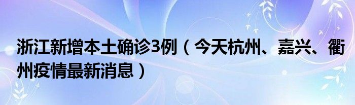 大家好,小安來為大家解答以上的問題浙江新增本土確診3例,今天杭州、嘉興、衢州疫情最新消息這個(gè)很多人還不知道,現(xiàn)在讓我們一起來看看吧!