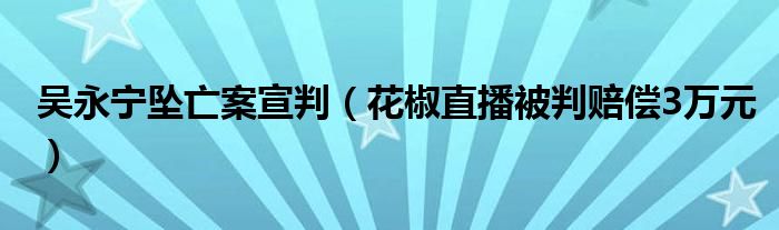 大家好,綜合小編來(lái)為大家講解下。吳永寧墜亡案宣判,花椒直播被判賠償3萬(wàn)元很多人還不知道,現(xiàn)在讓我們一起來(lái)看看吧!