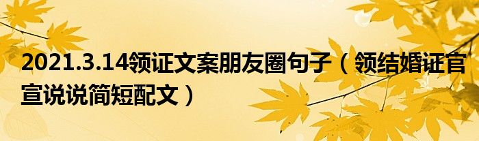 大家好,小安來為大家解答以上的問題2021.3.14領證文案朋友圈句子,領結婚證官宣說說簡短配文這個很多人還不知道,現在讓我們一起來看看吧!