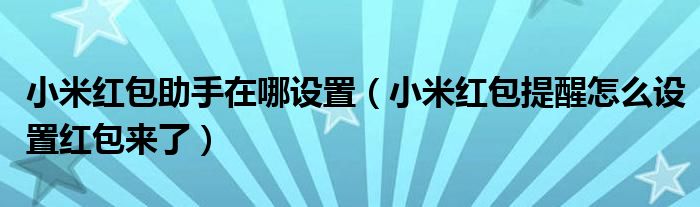 大家好,小安來為大家解答以上的問題小米紅包助手在哪設置,小米紅包提醒怎么設置紅包來了這個很多人還不知道,現在讓我們一起來看看吧!