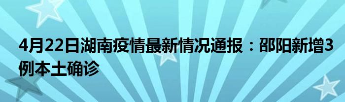 大家好,小安來為大家解答以上的問題4月22日湖南疫情最新情況通報(bào):邵陽新增3例本土確診這個(gè)很多人還不知道,現(xiàn)在讓我們一起來看看吧!