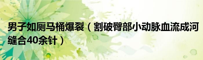 大家好,小安來為大家解答以上的問題男子如廁馬桶爆裂,割破臀部小動脈血流成河縫合40余針這個很多人還不知道,現在讓我們一起來看看吧!