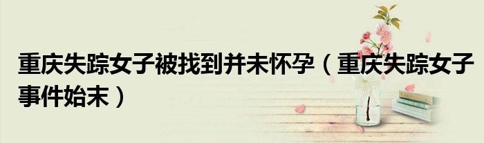 大家好,綜合小編來為大家講解下。重慶失蹤女子被找到并未懷孕,重慶失蹤女子事件始末很多人還不知道,現在讓我們一起來看看吧!