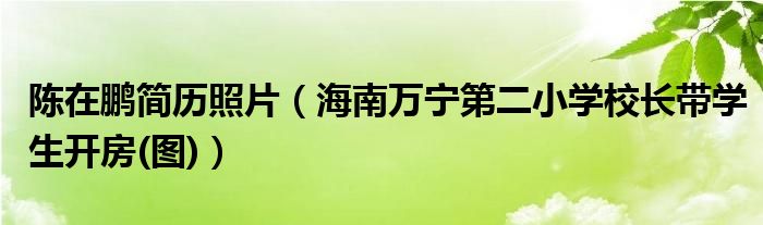 大家好,小安來為大家解答以上的問題陳在鵬簡歷照片,海南萬寧第二小學校長帶學生開房(圖)這個很多人還不知道,現在讓我們一起來看看吧!