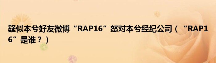 大家好,小安來為大家解答以上的問題疑似本兮好友微博“RAP16”怒對(duì)本兮經(jīng)紀(jì)公司,“RAP16”是誰?這個(gè)很多人還不知道,現(xiàn)在讓我們一起來看看吧!