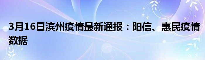 大家好,小安來為大家解答以上的問題3月16日濱州疫情最新通報:陽信、惠民疫情數據這個很多人還不知道,現在讓我們一起來看看吧!