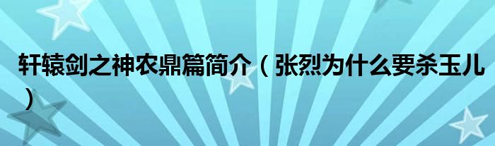 大家好,綜合小編來為大家講解下。軒轅劍之神農鼎篇簡介,張烈為什么要殺玉兒很多人還不知道,現在讓我們一起來看看吧!