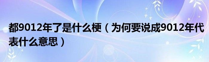 大家好,小安來(lái)為大家解答以上的問題都9012年了是什么梗,為何要說(shuō)成9012年代表什么意思這個(gè)很多人還不知道,現(xiàn)在讓我們一起來(lái)看看吧!