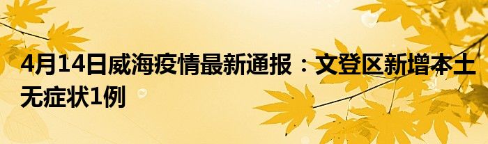 大家好,小安來為大家解答以上的問題4月14日威海疫情最新通報:文登區新增本土無癥狀1例這個很多人還不知道,現在讓我們一起來看看吧!