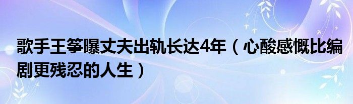 大家好,綜合小編來為大家講解下。歌手王箏曝丈夫出軌長(zhǎng)達(dá)4年,心酸感慨比編劇更殘忍的人生很多人還不知道,現(xiàn)在讓我們一起來看看吧!