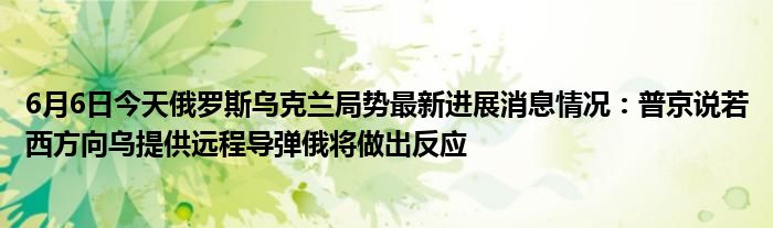 大家好,小安來為大家解答以上的問題6月6日今天俄羅斯烏克蘭局勢最新進展消息情況:普京說若西方向烏提供遠程導彈俄將做出反應這個很多人還不知道,現在讓我們一起來看看吧!