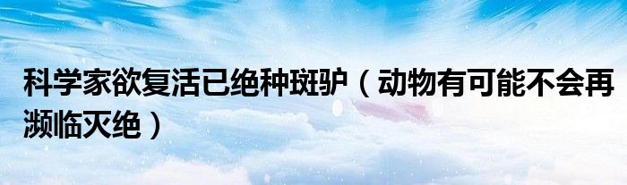 大家好,綜合小編來為大家講解下。科學家欲復(fù)活已絕種斑驢,動物有可能不會再瀕臨滅絕很多人還不知道,現(xiàn)在讓我們一起來看看吧!