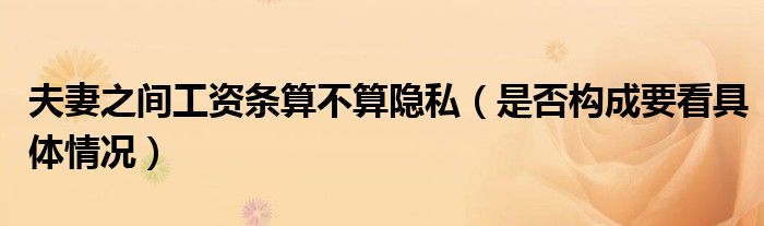 大家好,綜合小編來為大家講解下。夫妻之間工資條算不算隱私,是否構成要看具體情況很多人還不知道,現在讓我們一起來看看吧!