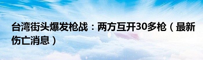 大家好,小安來為大家解答以上的問題臺灣街頭爆發槍戰:兩方互開30多槍,最新傷亡消息這個很多人還不知道,現在讓我們一起來看看吧!