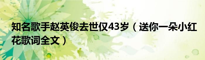 大家好,小安來為大家解答以上的問題知名歌手趙英俊去世僅43歲,送你一朵小紅花歌詞全文這個很多人還不知道,現在讓我們一起來看看吧!