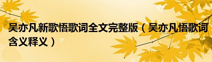 10月12日,吳亦凡新專輯第三首中文單曲《悟》正式上線。那么吳亦凡悟歌詞什么意思?下面為大家?guī)淼氖菂且喾参蚋柙~介紹。