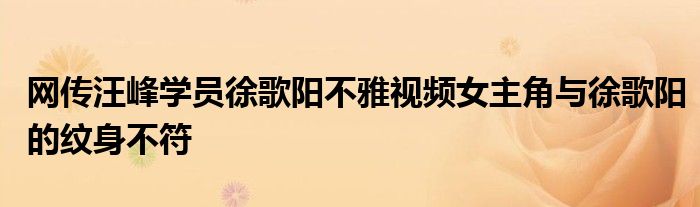 大家好,小安來為大家解答以上的問題網傳汪峰學員徐歌陽不雅視頻女主角與徐歌陽的紋身不符這個很多人還不知道,現在讓我們一起來看看吧!