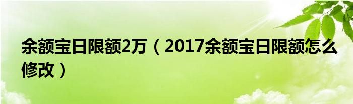 大家好,綜合小編來為大家講解下。余額寶日限額2萬,2017余額寶日限額怎么修改很多人還不知道,現在讓我們一起來看看吧!