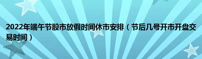 2022端午節(jié)放假節(jié)后幾號(hào)開市開盤交易時(shí)間