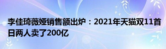 大家好,小安來為大家解答以上的問題李佳琦薇婭銷售額出爐:2021年天貓雙11首日兩人賣了200億這個很多人還不知道,現在讓我們一起來看看吧!