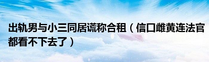 大家好,綜合小編來為大家講解下。出軌男與小三同居謊稱合租,信口雌黃連法官都看不下去了很多人還不知道,現在讓我們一起來看看吧!