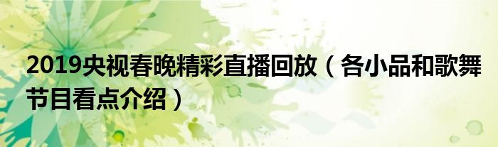 大家好,小安來為大家解答以上的問題2019央視春晚精彩直播回放,各小品和歌舞節目看點介紹這個很多人還不知道,現在讓我們一起來看看吧!