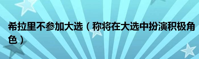 大家好,綜合小編來為大家講解下。希拉里不參加大選,稱將在大選中扮演積極角色很多人還不知道,現在讓我們一起來看看吧!