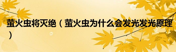 大家好,綜合小編來為大家講解下。螢火蟲將滅絕,螢火蟲為什么會(huì)發(fā)光發(fā)光原理很多人還不知道,現(xiàn)在讓我們一起來看看吧!