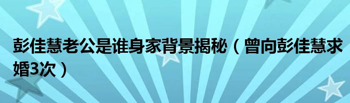 大家好,小安來為大家解答以上的問題彭佳慧老公是誰身家背景揭秘,曾向彭佳慧求婚3次這個(gè)很多人還不知道,現(xiàn)在讓我們一起來看看吧!