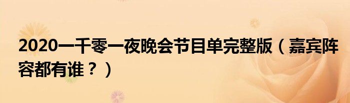 大家好,小安來為大家解答以上的問題2020一千零一夜晚會(huì)節(jié)目單完整版,嘉賓陣容都有誰?這個(gè)很多人還不知道,現(xiàn)在讓我們一起來看看吧!