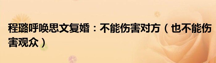 大家好,小安來為大家解答以上的問題程璐呼喚思文復(fù)婚:不能傷害對方,也不能傷害觀眾這個很多人還不知道,現(xiàn)在讓我們一起來看看吧!