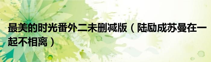 大家好,小安來為大家解答以上的問題最美的時光番外二未刪減版,陸勵成蘇曼在一起不相離這個很多人還不知道,現在讓我們一起來看看吧!