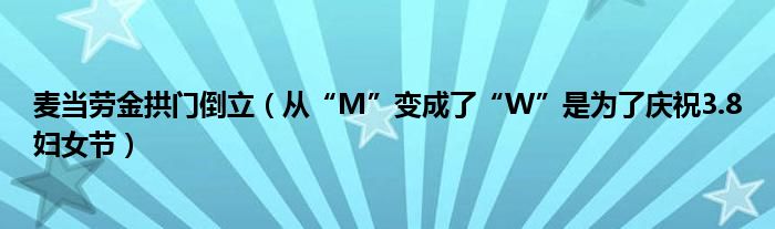 大家好,小安來為大家解答以上的問題麥當勞金拱門倒立,從“M”變成了“W”是為了慶祝3.8婦女節這個很多人還不知道,現在讓我們一起來看看吧!