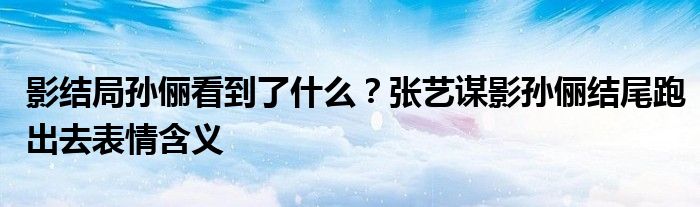 大家好,小安來為大家解答以上的問題影結局孫儷看到了什么?張藝謀影孫儷結尾跑出去表情含義這個很多人還不知道,現在讓我們一起來看看吧!
