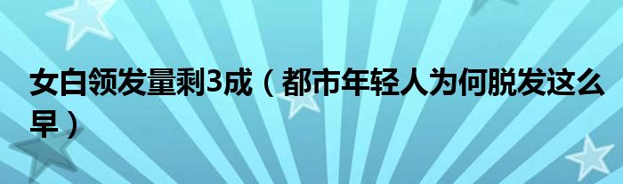 大家好,綜合小編來(lái)為大家講解下。女白領(lǐng)發(fā)量剩3成,都市年輕人為何脫發(fā)這么早很多人還不知道,現(xiàn)在讓我們一起來(lái)看看吧!