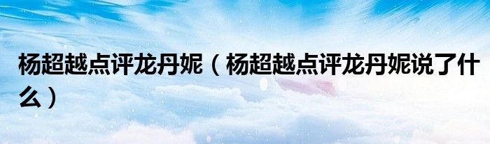 大家好,綜合小編來為大家講解下。楊超越點評龍丹妮,楊超越點評龍丹妮說了什么很多人還不知道,現(xiàn)在讓我們一起來看看吧!