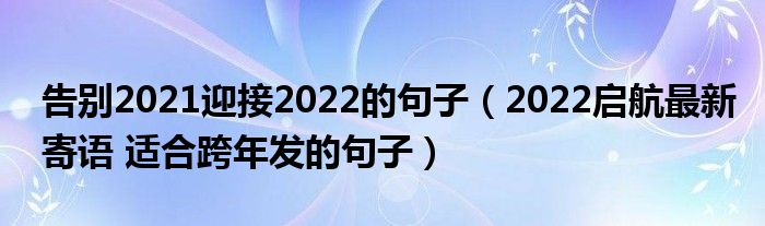 大家好,小安來為大家解答以上的問題告別2021迎接2022的句子,2022啟航最新寄語 適合跨年發的句子這個很多人還不知道,現在讓我們一起來看看吧!