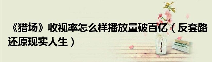 大家好,小安來(lái)為大家解答以上的問(wèn)題《獵場(chǎng)》收視率怎么樣播放量破百億,反套路還原現(xiàn)實(shí)人生這個(gè)很多人還不知道,現(xiàn)在讓我們一起來(lái)看看吧!