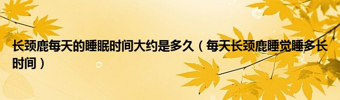 大家好,綜合小編來為大家講解下。長頸鹿每天的睡眠時間大約是多久,每天長頸鹿睡覺睡多長時間很多人還不知道,現在讓我們一起來看看吧!