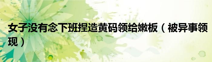 大家好,綜合小編來為大家講解下。女子沒有念下班捏造黃碼領(lǐng)給嫩板,被異事領(lǐng)現(xiàn)很多人還不知道,現(xiàn)在讓我們一起來看看吧!
