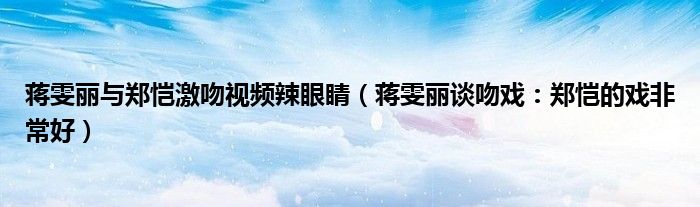 大家好,小安來為大家解答以上的問題蔣雯麗與鄭愷激吻視頻辣眼睛,蔣雯麗談吻戲:鄭愷的戲非常好這個(gè)很多人還不知道,現(xiàn)在讓我們一起來看看吧!