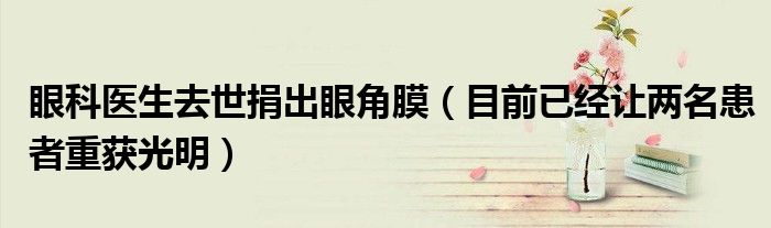 大家好,綜合小編來為大家講解下。眼科醫生去世捐出眼角膜,目前已經讓兩名患者重獲光明很多人還不知道,現在讓我們一起來看看吧!