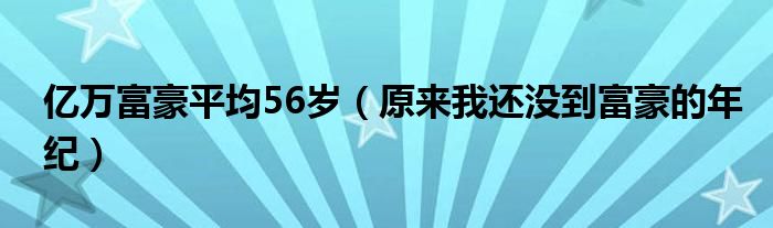 大家好,綜合小編來為大家講解下。億萬富豪平均56歲,原來我還沒到富豪的年紀(jì)很多人還不知道,現(xiàn)在讓我們一起來看看吧!