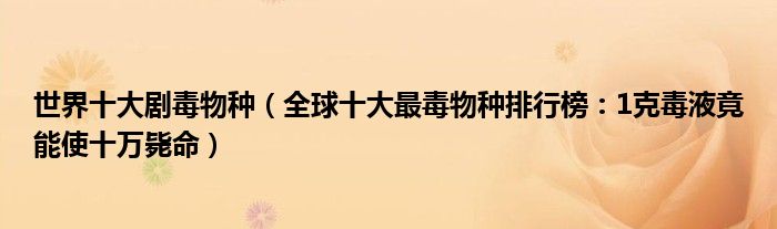 大家好,綜合小編來為大家講解下。世界十大劇毒物種,全球十大最毒物種排行榜:1克毒液竟能使十萬斃命很多人還不知道,現在讓我們一起來看看吧!