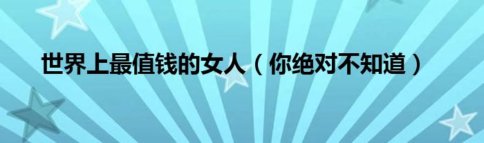 大家好,綜合小編來為大家講解下。世界上最值錢的女人,你絕對不知道很多人還不知道,現在讓我們一起來看看吧!