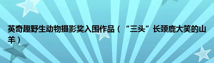 大家好,綜合小編來為大家講解下。英奇趣野生動物攝影獎入圍作品,“三頭”長頸鹿大笑的山羊很多人還不知道,現在讓我們一起來看看吧!