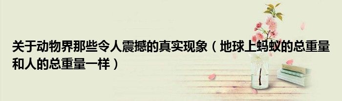 大家好,綜合小編來為大家講解下。關于動物界那些令人震撼的真實現象,地球上螞蟻的總重量和人的總重量一樣很多人還不知道,現在讓我們一起來看看吧!