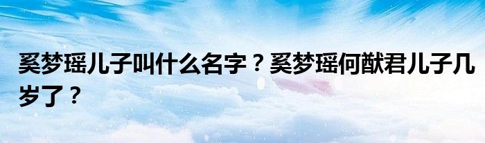 大家好,小安來為大家解答以上的問題奚夢瑤兒子叫什么名字?奚夢瑤何猷君兒子幾歲了?這個(gè)很多人還不知道,現(xiàn)在讓我們一起來看看吧!