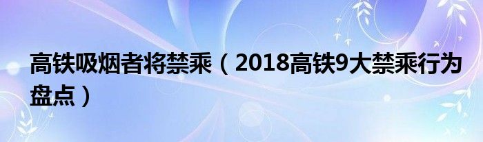 大家好,綜合小編來為大家講解下。高鐵吸煙者將禁乘,2018高鐵9大禁乘行為盤點很多人還不知道,現在讓我們一起來看看吧!
